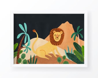 Leo Zodiac Print, Horoscope, Constellation, Lion Illustration, Astrology, Botanical Print, Gift for Her, Nursery Wall Art