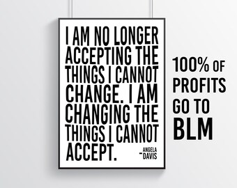 BLM Donation Print | I Am No Longer Accepting The Things I Cannot Change Angela Davis Quote Black Lives Matter Protest Poster Printable