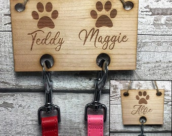 Personalised Dog Lead Holder - Engraved Wooden Leash Hook Custom Dog Owner Gift - Rustic Personalized Lead Hanger Home Decor for Dog Lover