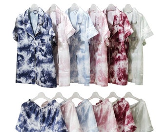 Tie Dye Bridesmaid Pajama, Pajamas Monogram, Bridesmaid Pajama Set, Pajama Set Bridesmaid, Bridesmaid PJs Satin, Pajama Short Set
