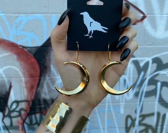 the big golden crescent moon earrings // ravenstone earrings // made in the usa