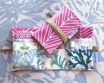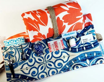 Beach Read Bookmark - Brown Leather & Blue Cottage Fabric - vacation book ready!