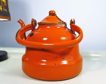 Vintage Enamel Teapot Orange color Enamelware Teapot Coffee Kettle Made in Holland