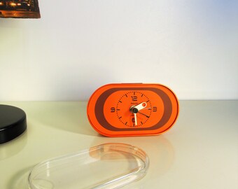 Vintage PHILIPS Electric Alarm Clock Orange and Dark Brown color Made in Holland 70s
