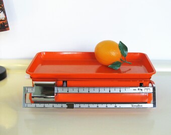 Vintage Kitchen Scale TERRAILLON Orange color Kitchen Sliding Scale with Plastic Orange Tray Grocery Store 10Kg / 22Lbs Made in France 70s