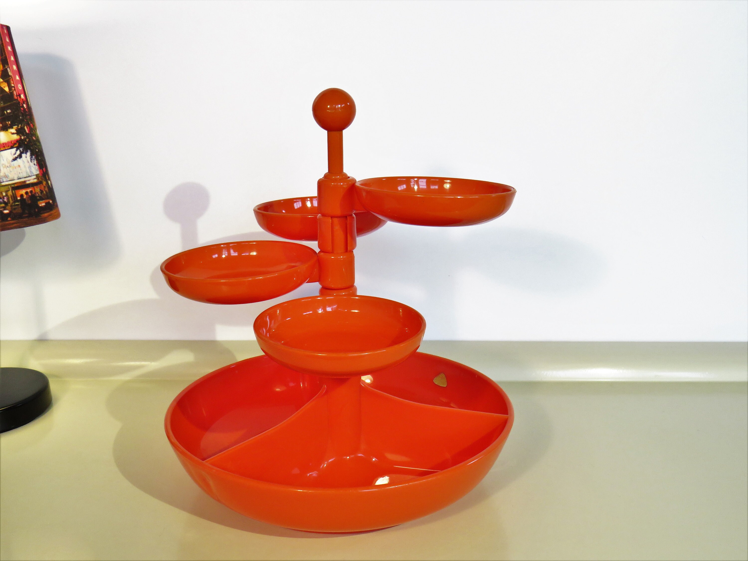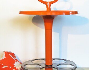 Vintage Shelf Snack Tower Plastic Snack Server Bright Orange Color Plasticos de Galicia Brand Made in Spain 70s