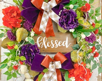Purple and orange Fall wreath, Clemson wreath, Thanksgiving wreath, Purple fall wreath, Fall blessed wreath, Fall decor
