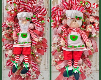 Double door Christmas swag, Christmas candy swag, Santa Claus wreath, Mrs Claus wreath, Christmas kitchen wreath