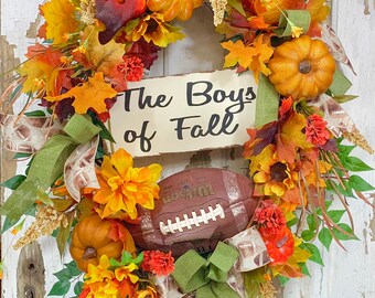 Football wreath For front door, Football wreath, Boys of fall design, Fall football wreath, Football coach gift, Football decor
