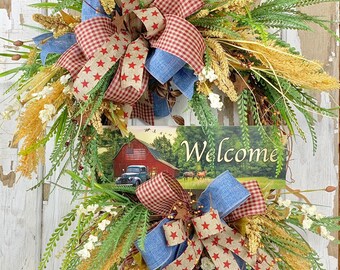 Fall wreath, Fall decor, Patriotic wreath, Americana wreath, Primitive patriotic wreath, Americana decor, Primitive fall wreath