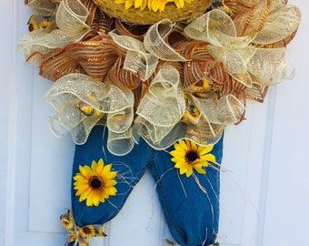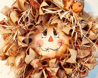 Scarecrow Wreath Tutorial, scarecrow wreath DIY, how to make a decomesh wreath, how to make a scarecrow wreath -