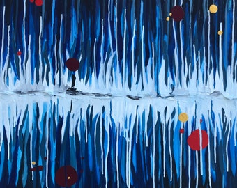 Art, Wall Art Original Painting Acrylic Abstract Contemporary Home Decor Abstract Modern Blue White Canvas Title: WARPED REFLECTIONS