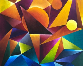 WallArt Acrylic Geometric Contemporary Home Decor Abstract Modern Square MultiColored Title: PLANETARY MOVEMENTS (Crystal Color Series)