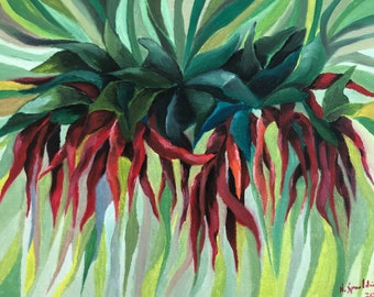 Contemporary, Original Oil painting, Peppers, Still Life, Red, Canvas, Gallery, Contemporary, green paiting. Title: Red Hot Chilli Peppers