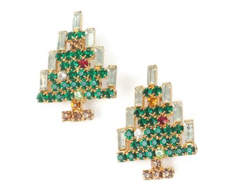 Two Rhinestone Christmas Tree Pins Baguettes Chatons Smaller Size Vintage