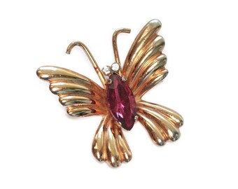 Dark Pink Rhinestone Butterfly Pin Signed Coro Vintage Pin Insect Jewelry