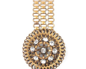Rosette Rhinestone Bracelet Book Chain Links Victorian Vintage Smaller Wrist