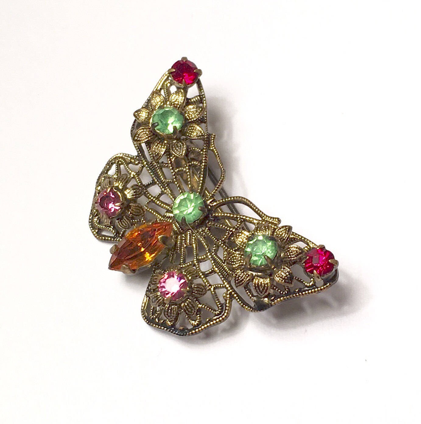 Rhinestone Butterfly Pin Filigree Czechoslovakia Vintage Smaller