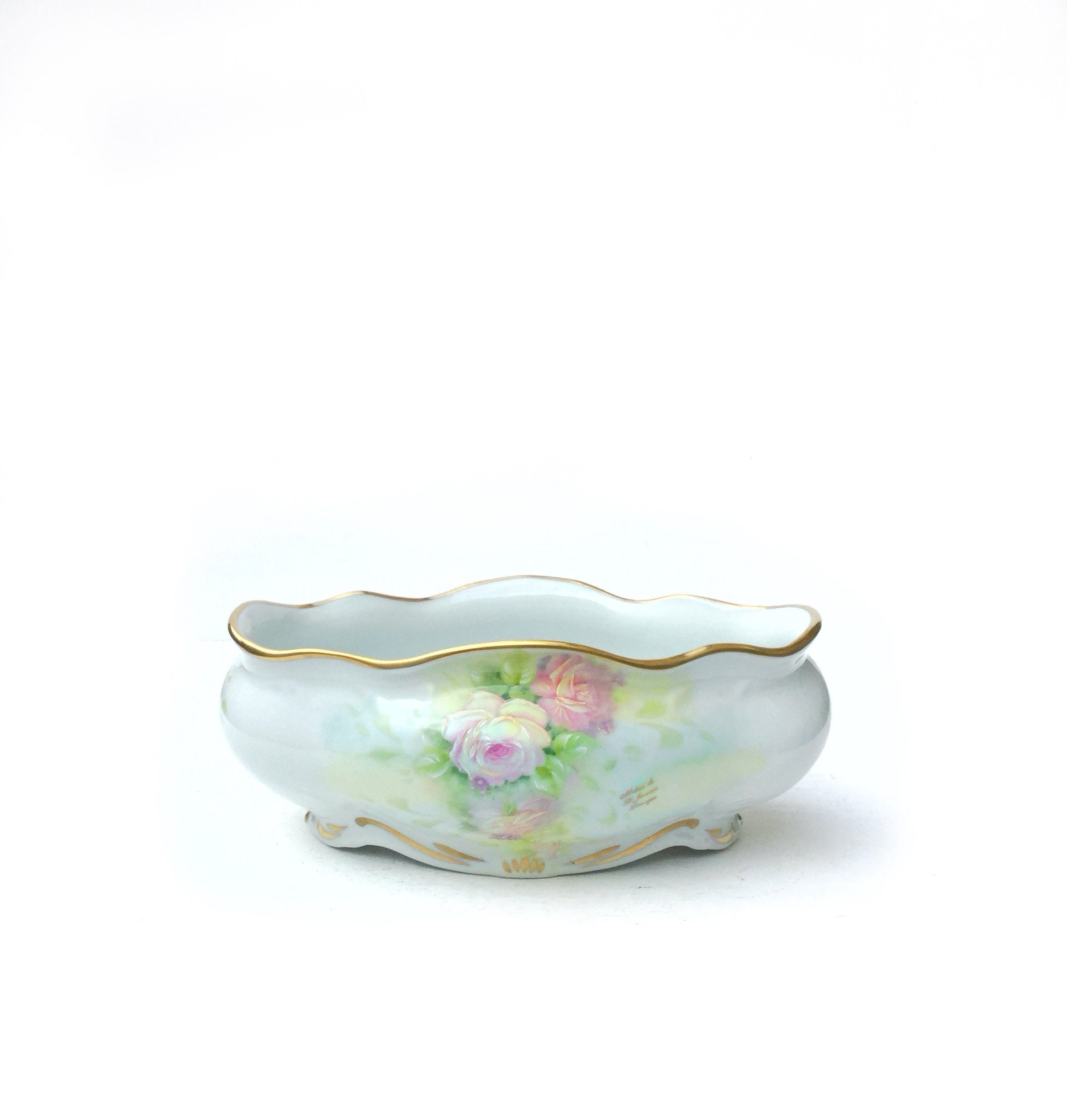 Large vintage Limoges Jardiniere William Guerin Porcelain Hand painted signed cabbage Roses - mid century /shabby floral style