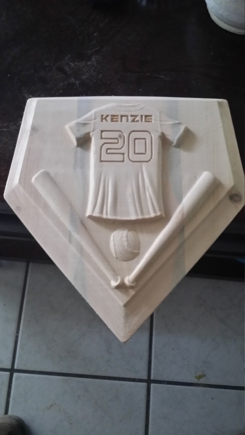 Personalized Home Plate Baseball/Softball V Carved Wooden Sign -