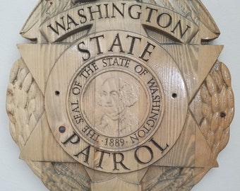 Washington State Patrol Police Officer Badge - 3D V CARVED - Personalized Police Badge V Carved Wood Sign