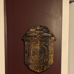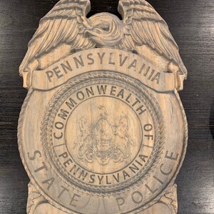 3D V CARVED - Personalized Pennsylvania State Trooper Police Badge V Carved Wood Sign -