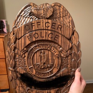 Special Purchase for gilewsc- Custom Utica NY Police badge 3D V Carved Wood Sign -
