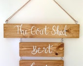Our products are made from treated wood, stained or painted, with hand painted lettering. We wax all our products with natural beeswax to protect the paint and ensure it is water resistant. We recommend you wax your sign every 12 months after purchase to ensure the wood is well protected. We cannot guarantee items will be protected if used outdoors.