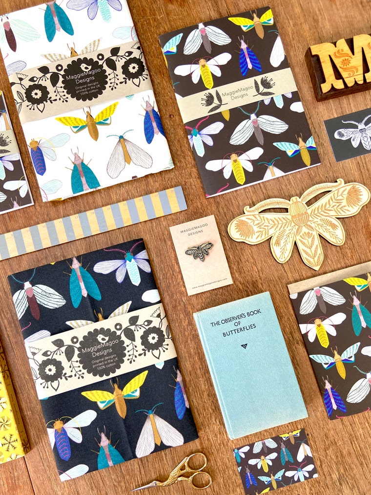 Butterfly and moth lovers can choose from a range of products like illustrated printed tea towels and quirky notebooks.