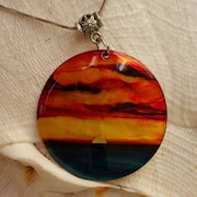 5 out of 5 starsThis painted shell necklace is stunning. It is a beautiful depiction of the moon over the water. The size is perfect. It is a lovely piece of art.