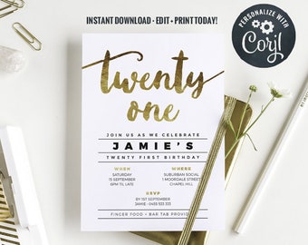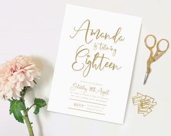Modern Gold Foil 18th birthday printable digital - instant download - gold foil effect