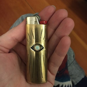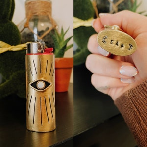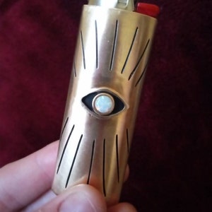 Vision Lighter Case with Opal // Evil Eye, All Seeing Eye, Brass Lighter Case