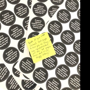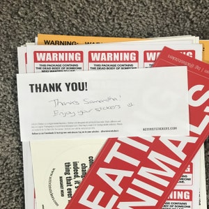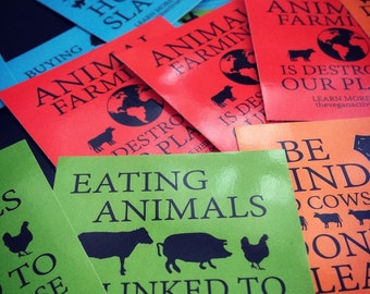 | 1,434 sales | 5 out of 5 stars42x Meat warning label sticker activism vegan vegetarian animal rights activist direct action decals animal liberation sticker bombing packs