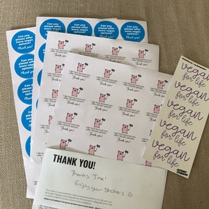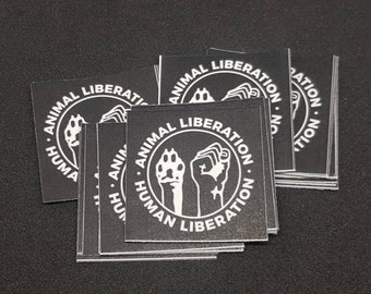 Bulk quantities of stickers are available for activists, animal rights groups, and non-profits. I can also do custom designs and printing of indoor & outdoor stickers, flyers, brochures, placards and banners. Please contact me through Etsy Conversation or email: trinitygraceblake [!at] gmail.com for a custom quote. I keep my pricing as low as possible to support the movement.