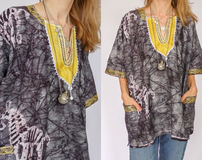 Vintage 1970s tie dye zebra Batik hippie tuniek Deadstock