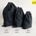 A drawstring bag suitable for carrying small items like pens, dice, sewing scissors & thread, etc. Exterior and lining made of 100% cotton.