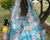 5 out of 5 starsThe Hawaiian purse with drink holders is New as described. I received it within the estimated delivery date,and it was packaged with care. I love how it folds into a pouch to fit in my purse as an extra bag to have with me. I like that it has pockets for my Thermal water bottles. The Hibicus Flowers on the Floral Print are beautiful !!! I'm glad it us a nylon water proof material since I walk often . I will definitely be a repeat customer since a positve sale, and excellent quality Hawaiian Reusale bags for reasonable prices.
