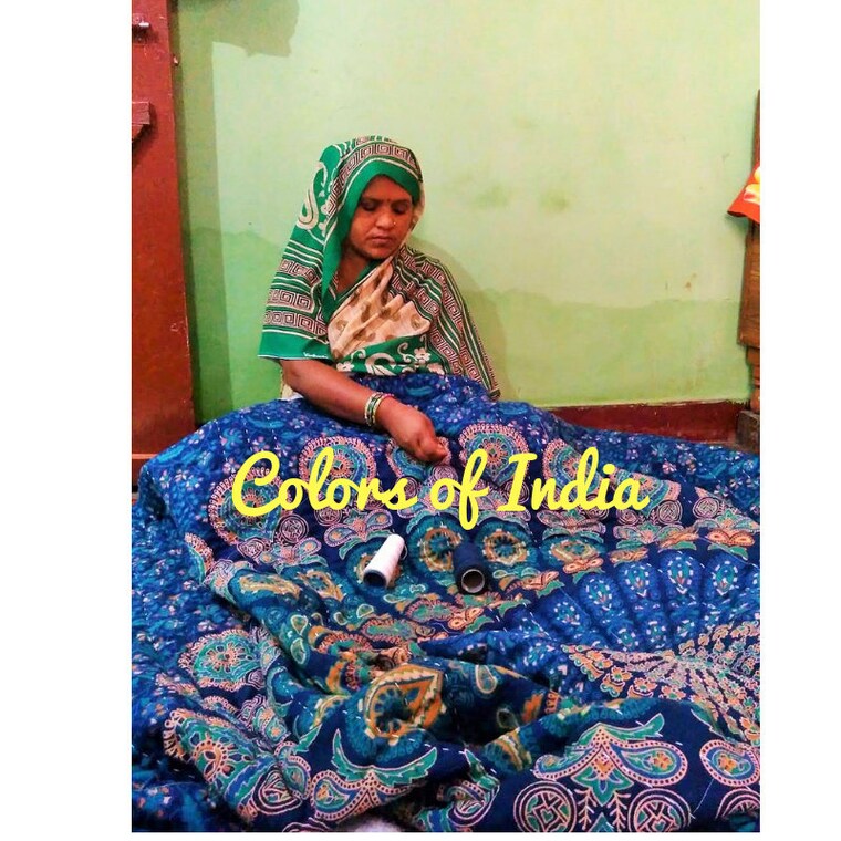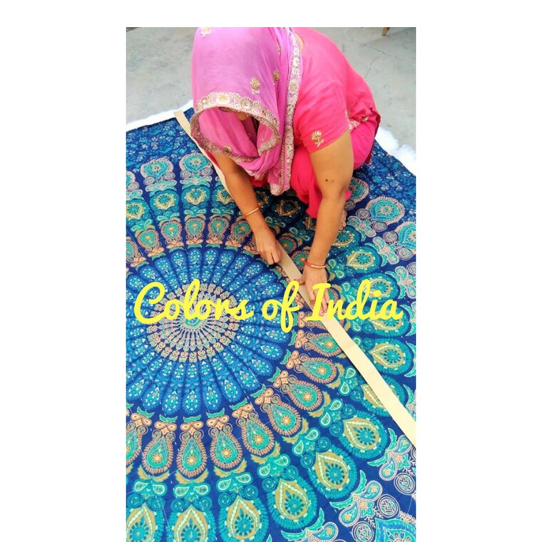 In case of Quilts , I finalise the design and the fabrics to be used . Most of the time i go the market myself along the sourcing guy to buy the main fabrics for the quilts . The Master then plans the production based on the design he is given . He calcuates the fabric consumption for the quilt .