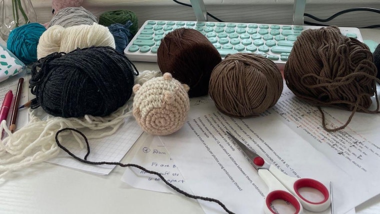 A: Whenever possible, yes! Many plushies begin as thrifted sweaters that I unravel, wash, and transform into soft amigurumi. It’s really cathartic to unravel a sweater, and a sweater can make many, many plushies. I love that it keeps clothing (or old unwanted yarn) out of landfills too. I do, at times buy yarn new, if I need a specific color or weight that I don't already have or can't find second-hand.