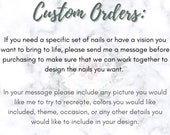 5 out of 5 starsWe ordered custom acrylic nails, and they are amazing - quality and design! The owner was very helpful and understood what we wanted. The nails are BEAUTIFUL - works of art.