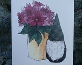 To make the note cards, I draw or paint an image, then scan the art and upload it to the computer. I edit any unwanted pencil or paint marks and get it ready for print. After the picture has been edited, it's emailed to the printer. Once printed, we fold and package them to sell.