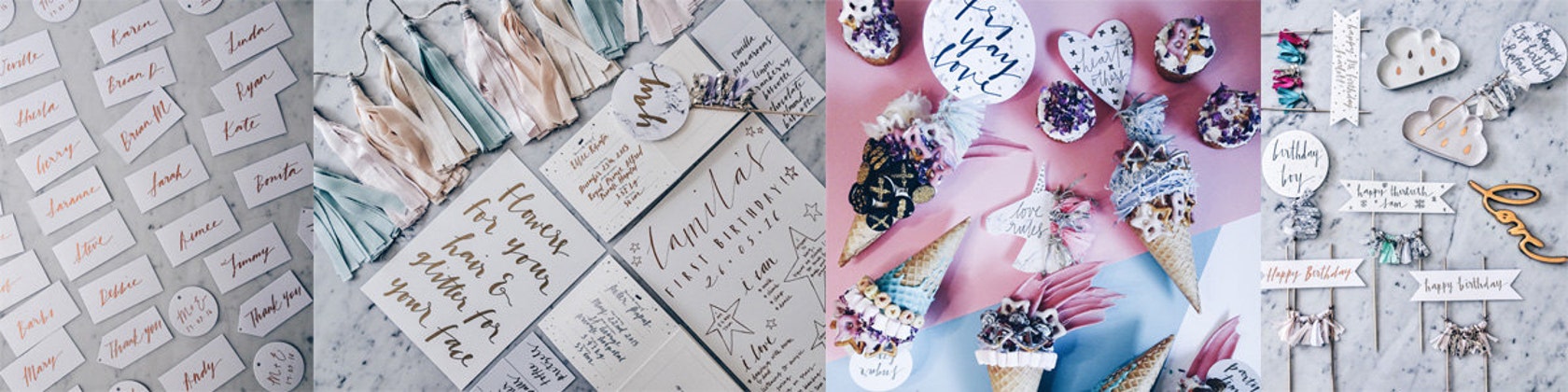 Susan creates made-to-order party décor, beautifully hand-crafted and hand-lettered for each client.