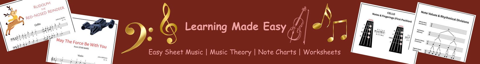Partituras fáciles para violonchelo / teoría musical / hojas de trabajo