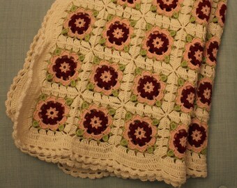 Crochet Plaid "Roses" Afghan Granny Squares