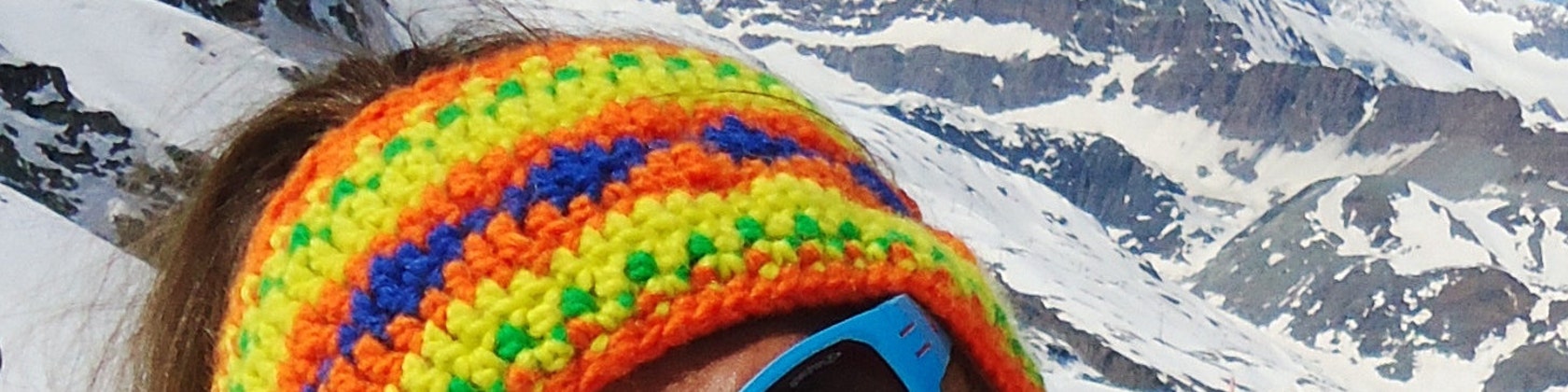I started with stained glass, then made an education as a theatre pedagogue and started to give massages. After a bad health katastrophe in 2011 I began to do handcrafts again. I got inspired in Zermatt close to the Matterhorn to produce crocheted headbands. Have fun while looking arounnd!