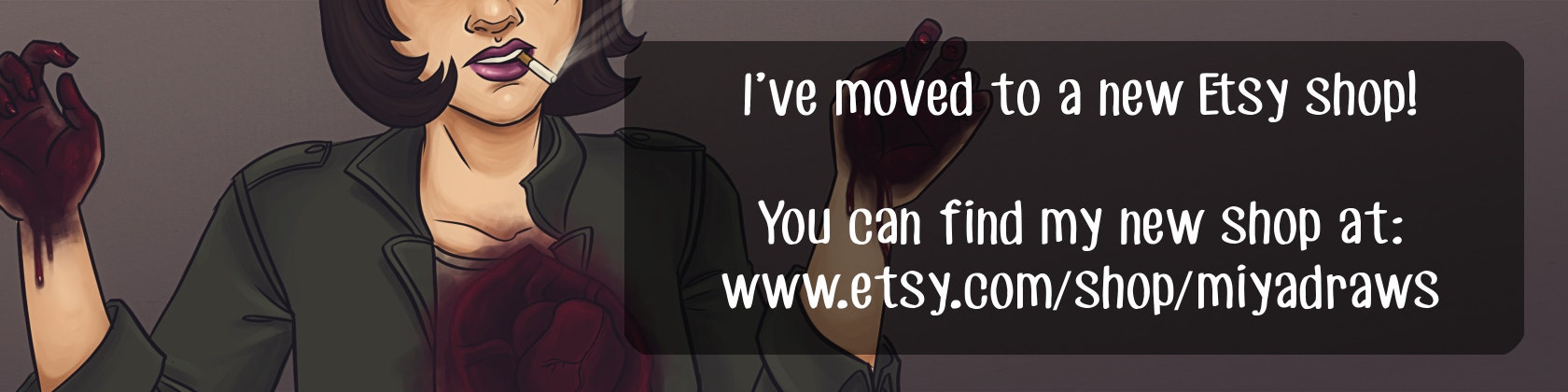 I've moved to a new Etsy shop! Everything in the shop will be transferred over to "MiyaDraws" at https://www.etsy.com/shop/miyadraws