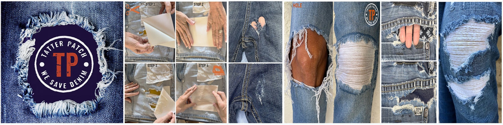 DON’T TOSS YOUR 💓 TORN OR RIPPED JEANS! REPAIR AND REPLACE DISTRESSED JEAN THREADS IN MINUTES! NO SEWING, JUST CUT - PEEL - APPLY.
