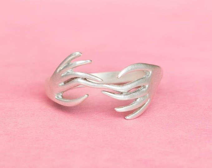 Sterling Silver Antler Ring, Adjustable Open Band, Nature Jewelry