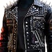 This jacket features sharp, conical metal studs. While fashionable, these studs are rigid and can cause injury if they come into forceful contact with skin or other individuals. Exercise caution in crowded environments, mosh pits, or when hugging others.