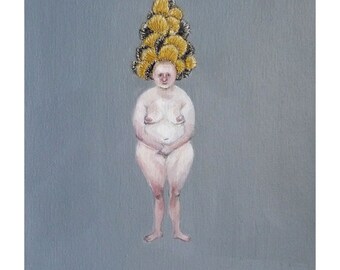 Fine art print, Wall art print, Color portrait of a woman with yellow flowers covering her face, 8x10 - Yellow